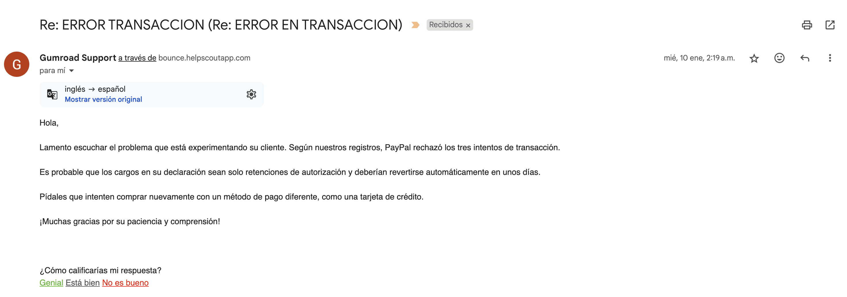 También en la pagina oficial de Gumroad muestran algunas de las razones por las cuales pudo haber sucedido haber sucedido, así como lo que usted puede hacer para ayudar a resolver la situación. Puedes ver el articulo completo aquí: